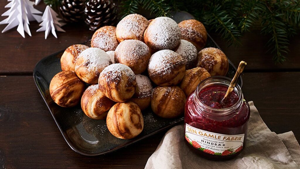 - pyszne duńskie æbleskiver (kulki naleśnikowe) i gorąca czekolada